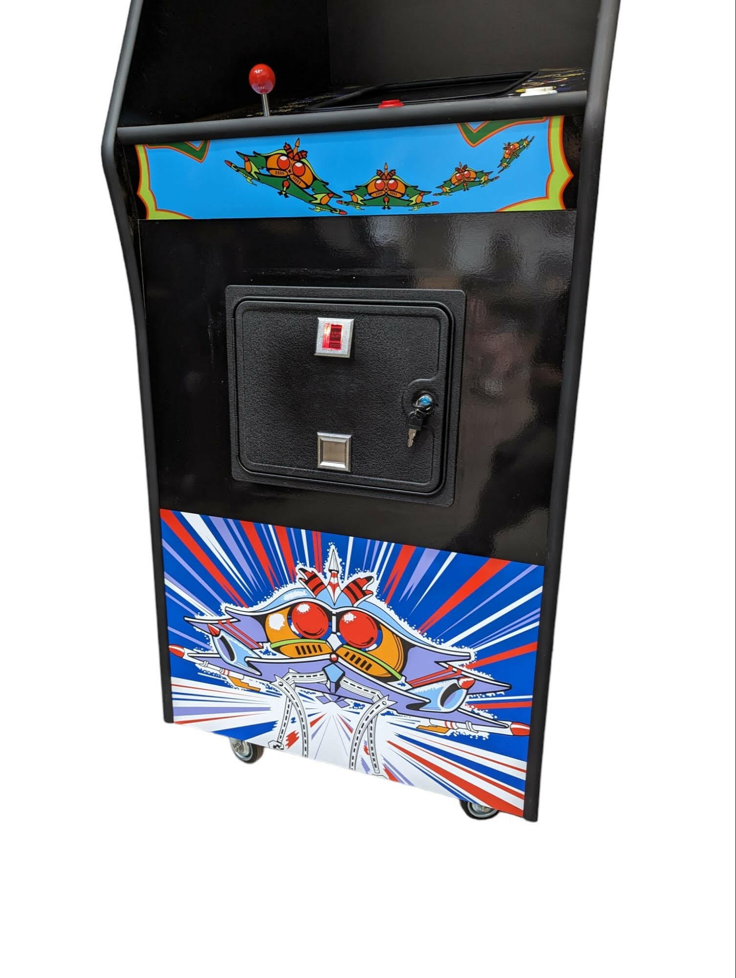 Built right here in our UK workshop, this Galaga replica is accurate in it's size and shape to the original but with a few modern upgrades.